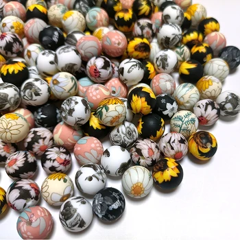 Wholesale 15mm Acrylic Bright Christmas Printed Plated Clear Uv Bpa Free Round Acrylic Beads Mixed for Beaded Pen Making